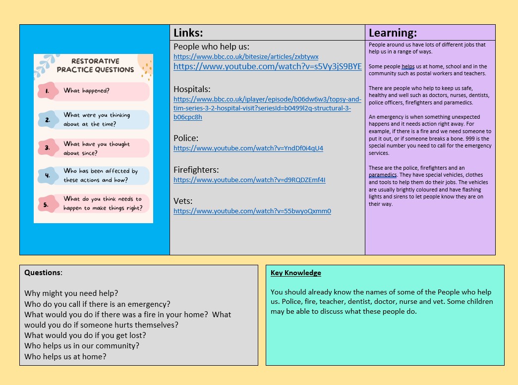 Our topic in Reception for our first half-term is "People Who Help Us".