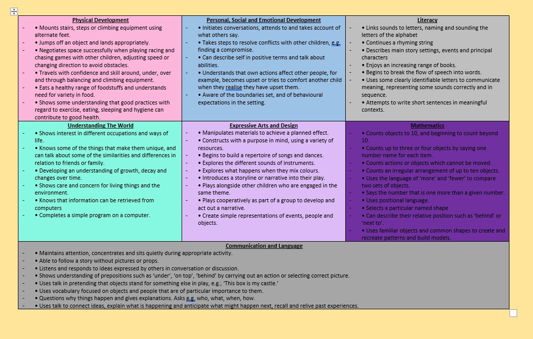 - Creativity and critical thinking – children have and develop their own ideas, make links between ideas and develop strategies for doing things.
